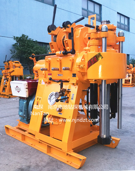XY-200型鉆機集合了目前市場流行的XY-1、XY-1B、XY-1A等小型鉆機的主要功能和特點設計而成的。即采用XY-1的油壓自動給進,XY-1B的大模數齒輪傳動系統(tǒng),XY-1A的寬范圍轉速的較大扭矩輕型回轉鉆機。 為使本機的適用性更廣泛,滿足不同用戶的需求,推出移機型XY-200(YJ)型鉆機(帶移機功能)、增加了水泵(不帶移機) 的XY-200-1型和帶移機帶水泵功能的XY-200-2型鉆機。鉆機、柴油機(或電動機)安裝在同一底座上。鉆進深度可達200米。