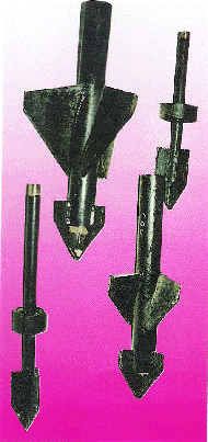 三葉合金鉆頭:Φ75、90、110、130、150、200、220、250、280、300、350、400、450、500...主要分標準型(接頭三葉合金鉆頭、鉆桿三葉合金鉆頭)、導正型(鉆桿三葉合金鉆頭、鉆桿多層三葉合金鉆頭),多種規格和形式,可以根據要求定做。