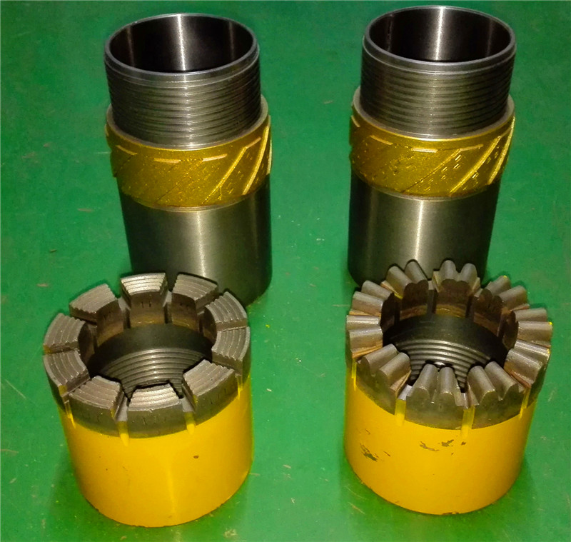 取芯鉆桿鉆具是一種不提鉆而從鉆桿內(nèi)撈取巖芯的鉆井工具。它具有鉆進(jìn)效率高,巖心采取率高,鉆頭壽命長,勞動(dòng)強(qiáng)度小等優(yōu)點(diǎn)。隨著鉆孔深度的加深,其優(yōu)勢(shì)更為明顯。整套鉆具包括鉆具總成、鉆桿、加厚鉆桿、提引器、打撈器、夾持器、電動(dòng)或柴油機(jī)驅(qū)動(dòng)繩索絞車和金剛石自由鉗等部件。