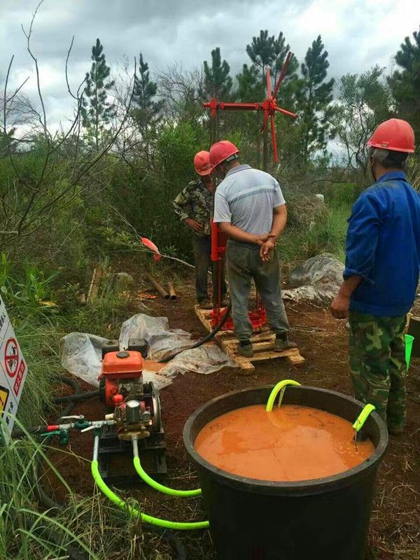 可以2人操作的取芯鉆機!鉆探深度可達30米!采用輕便的汽油機(或電動機可選)作為動力,分體式輕便實用,搬遷十分便利,帶支架穩定可靠,滿足野外車輛無法進入地區時用;鉆機操作簡單,易學易懂。實現合金、金剛石鉆頭鉆進及麻花螺旋鉆進和不取芯三葉合金鉆頭、復合片不取芯鉆頭引孔鉆進的需求。