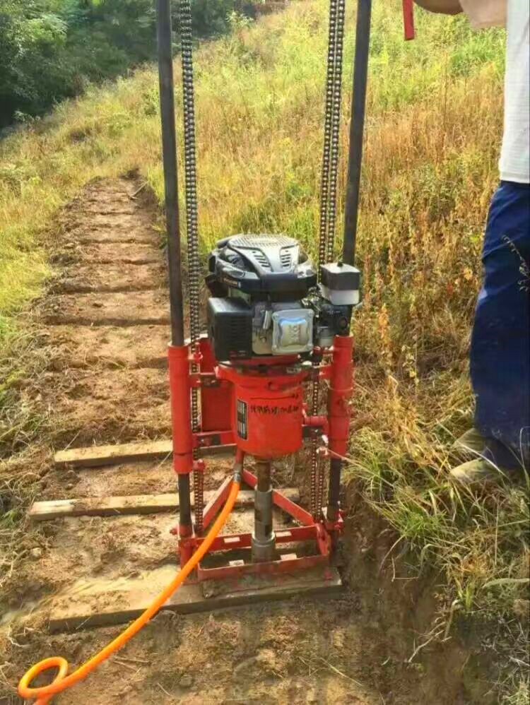 1、取樣鉆機:含汽油發動機鉆進裝置、鏈條式支架、轉向盤、木架底座。