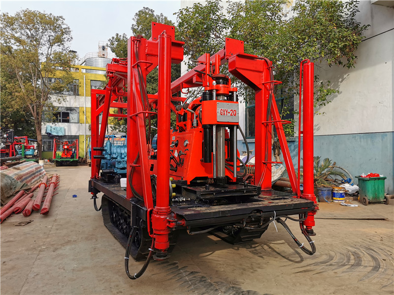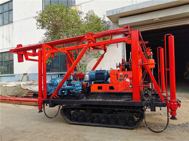 1、鉆機機組由履帶底盤、柴油機、鉆機及柴油機、雙液壓自動起落伸縮式鉆塔(采用雙液壓鉆塔,升高型液壓油缸作支撐,操縱閥控制鉆塔起落升降,操作省時省力,安全可靠)泥漿泵組成